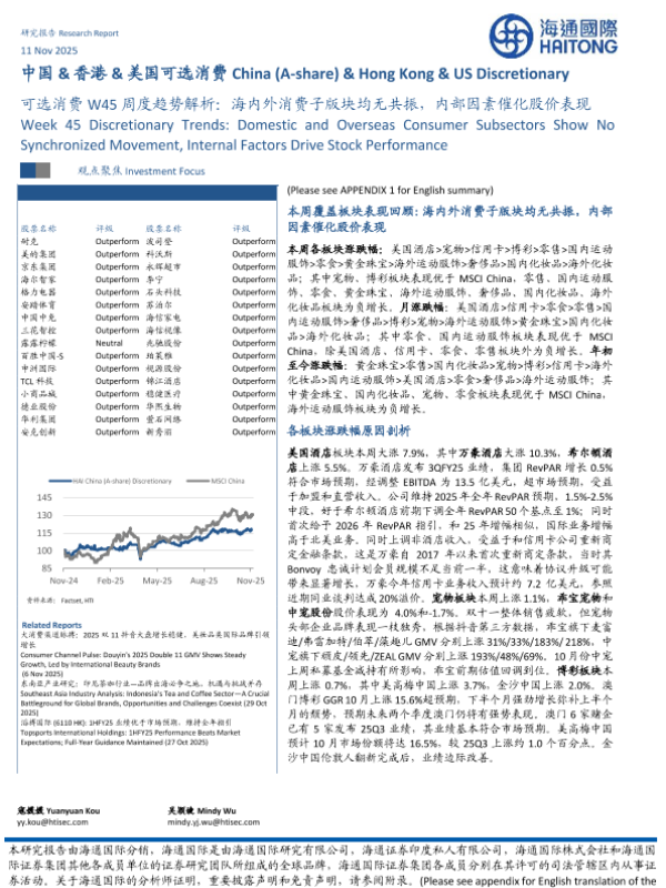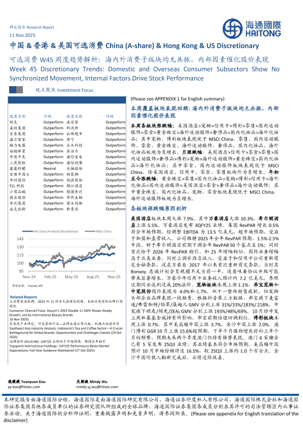【海通国际】【202511】可选消费W45周度趋势解析:海内外消费子版块均无共振,内部因素催化股价表现-15页