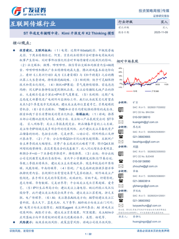 【广发证券】【202511】互联网传媒行业:ST华通发布摘帽申请,Kimi开源发布K2+Thinking模型-22页