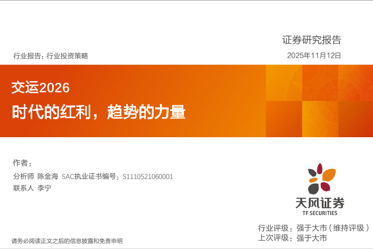 【天风证券】【202511】交运行业2026:时代的红利,趋势的力量-30页