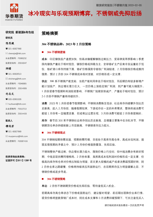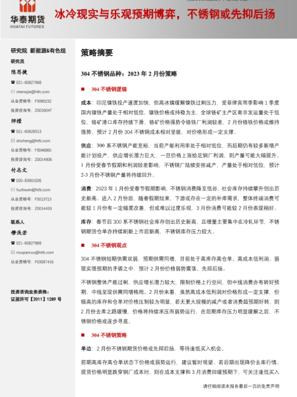 【华泰期货】【20230205】不锈钢月报:冰冷现实与乐观预期博弈,不锈钢或先抑后扬-20页