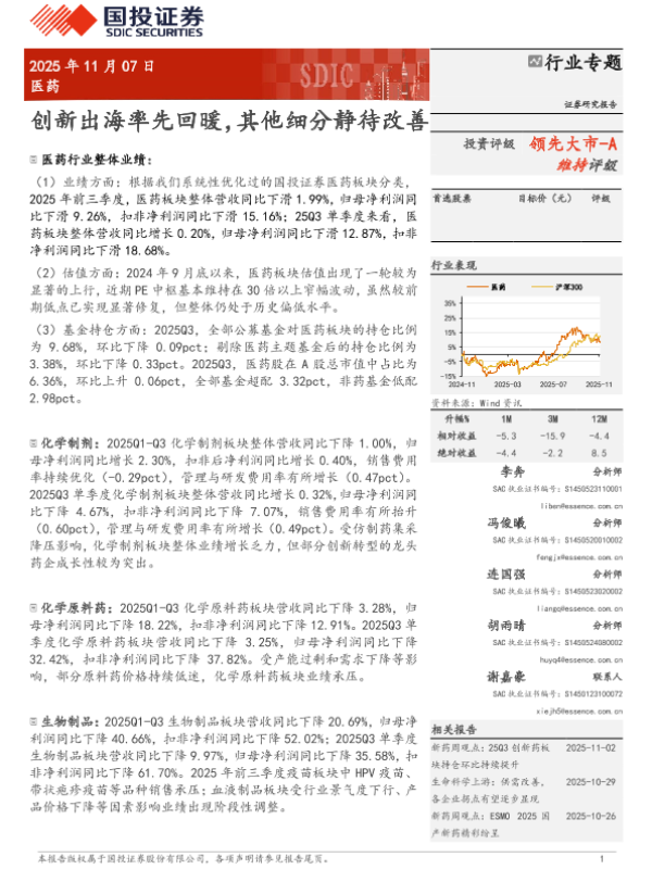 医药行业 创新药 中药 行业分析 医疗器械