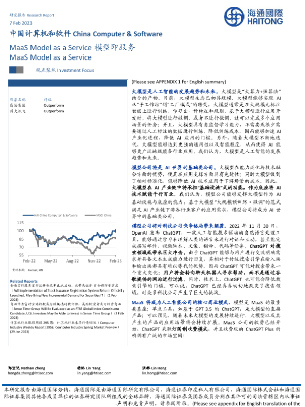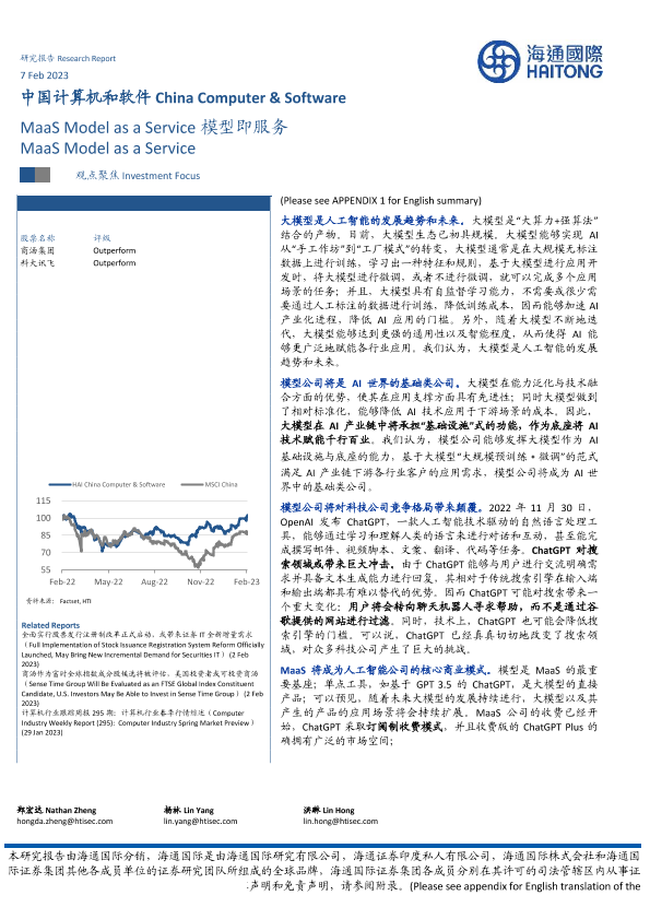 【海通国际】【20230207】中国计算机和软件行业:MaaS Model as a Service模型即服务-47页
