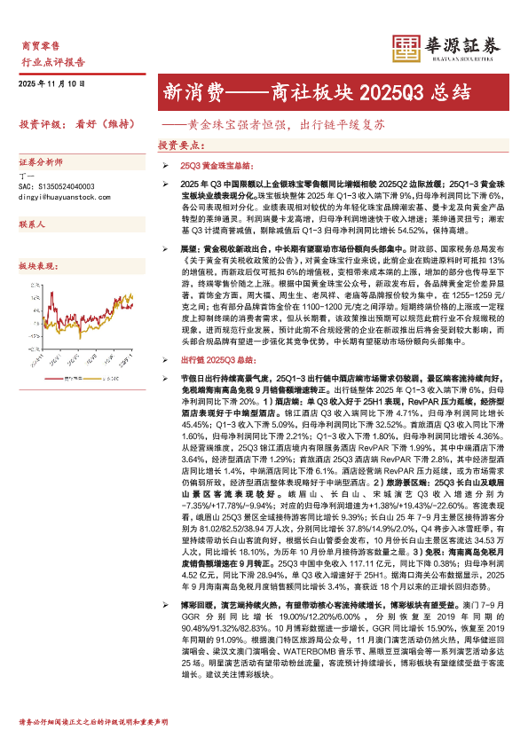 【华源证券】【202511】商贸零售行业点评报告:商社板块2025Q3总结,新消费,黄金珠宝强者恒强,出行链平缓复苏-10页