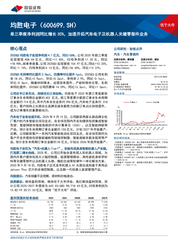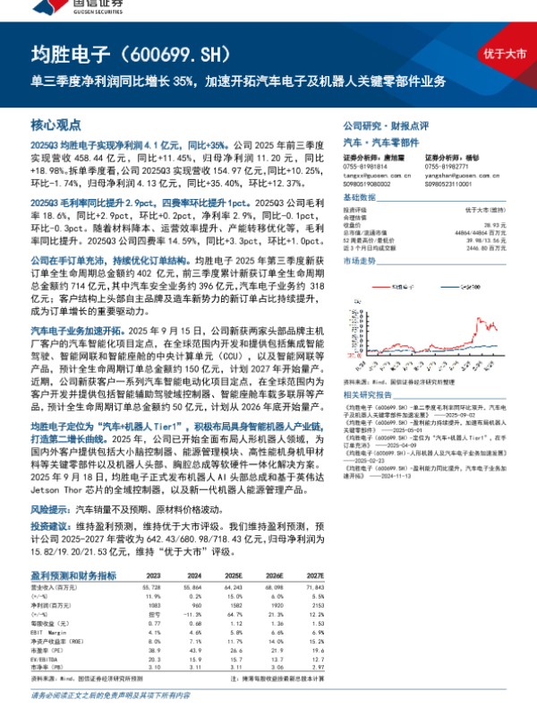 【国信证券】【202511】均胜电子(600699)单三季度净利润同比增长35%,加速开拓汽车电子及机器人关键零部件业务-18页