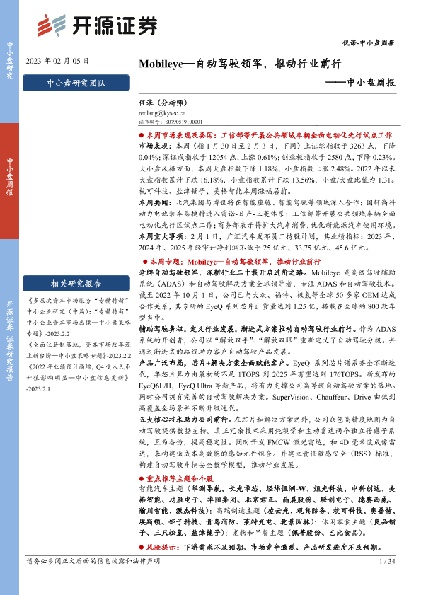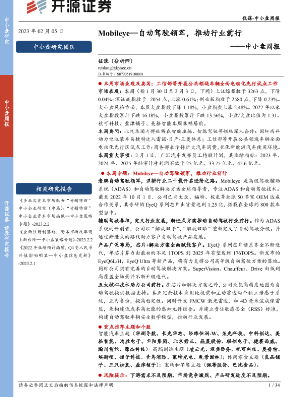 【开源证券】【20230205】中小盘周报:Mobileye—自动驾驶领军,推动行业前行-34页
