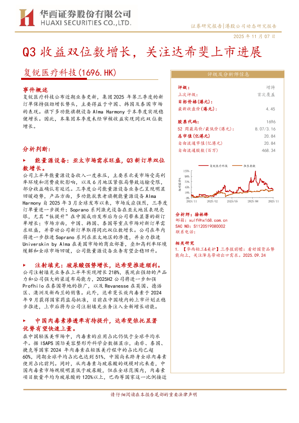 【华西证券】【202511】Q3收益双位数增长,关注达希斐上市进展-11页