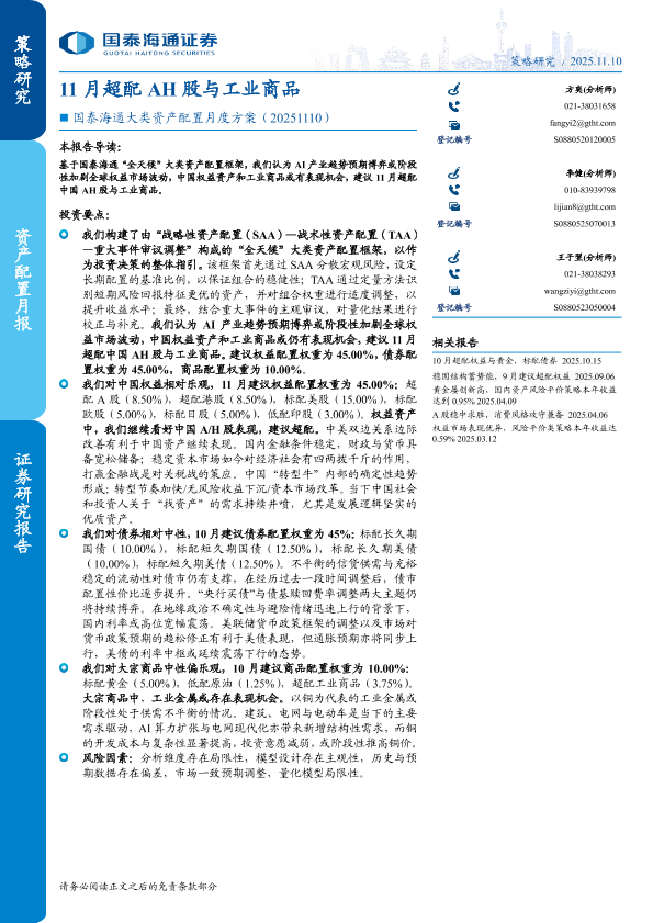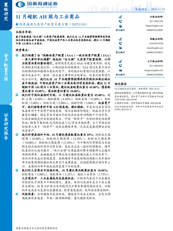 【国泰海通】【202511】11月超配AH股与工业商品-19页