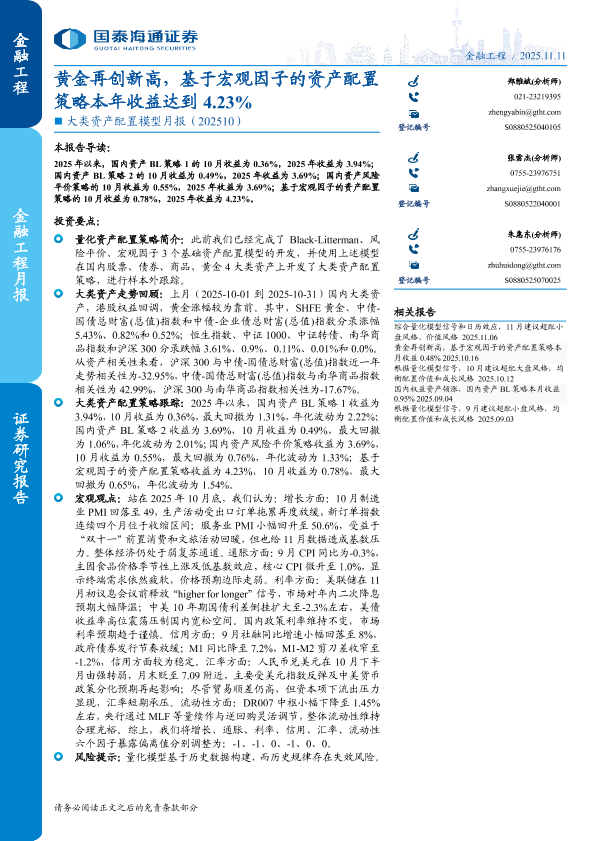 【国泰海通证券】【202510】黄金再创新高,基于宏观因子的资产配置策略本年收益达到4.23%-17页
