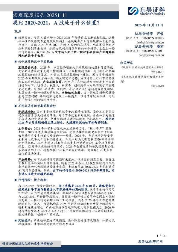 【东吴证券】【202511】宏观深度报告:类比2020-2021,A股处于什么位置?-14页