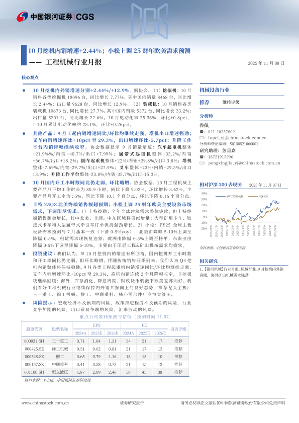 【银河证券】【202511】10月挖机内销增速+2.44%;小松上调 25财年欧美需求预测——工程机械行业月报-19页