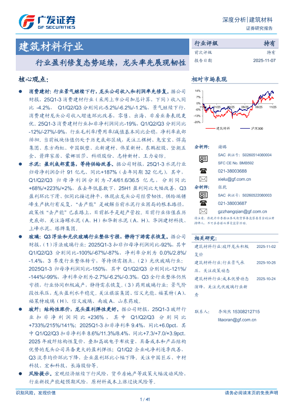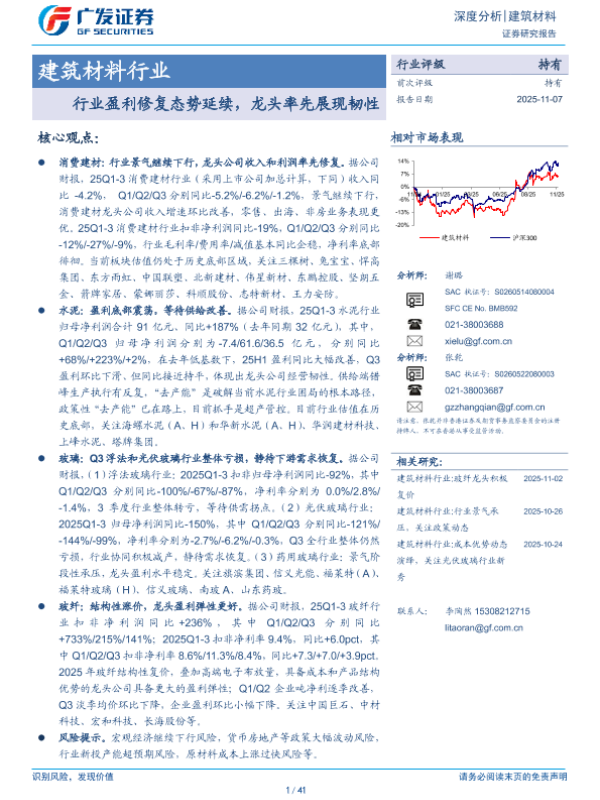 【广发证券】【202511】建筑材料行业:行业盈利修复态势延续,龙头率先展现韧性-41页