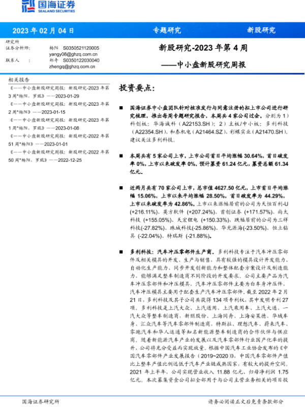 【国海证券】【20230204】中小盘新股研究周报:新股研究-2023年第4周-19页