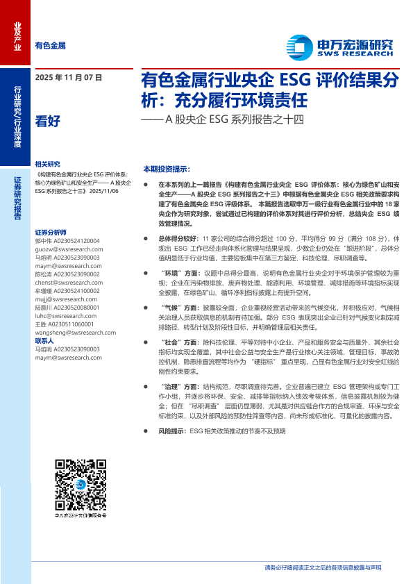 【申万宏源】【202511】有色金属行业央企ESG评价结果分析:充分履行环境责任-21页