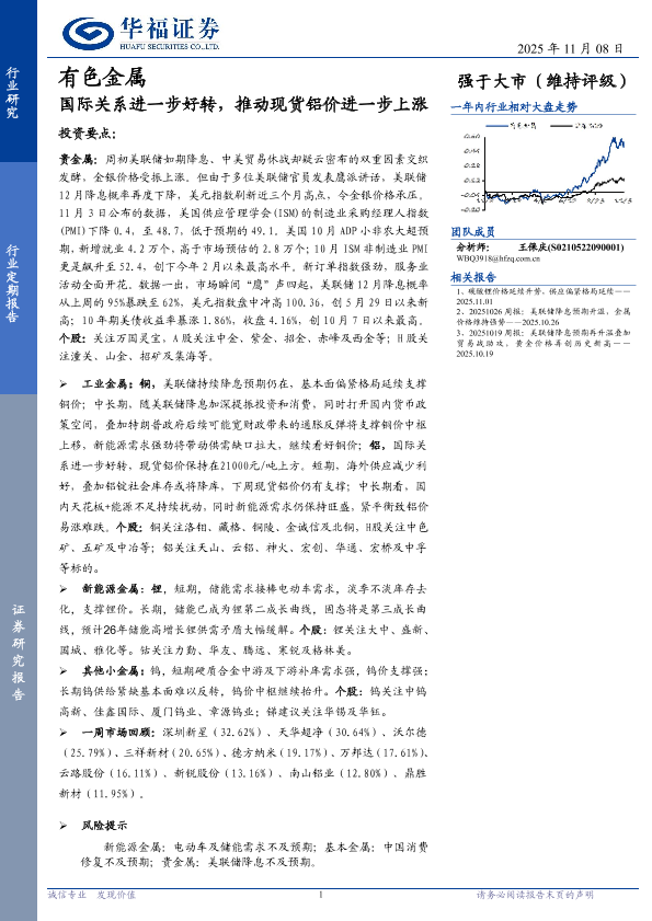 【华福证券】【202511】有色金属行业定期报告:国际关系进一步好转,推动现货铝价进一步上涨-15页