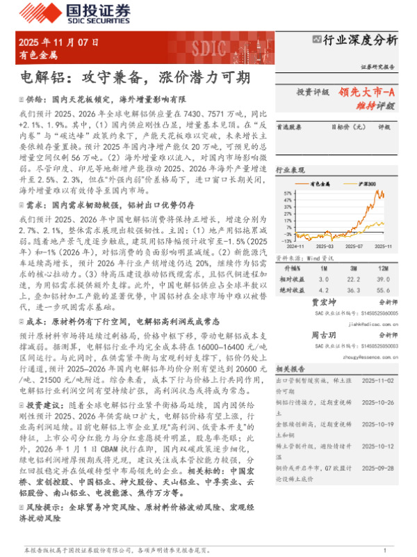 【国投证券】【202511】有色金属行业深度分析:电解铝,攻守兼备,涨价潜力可期-29页