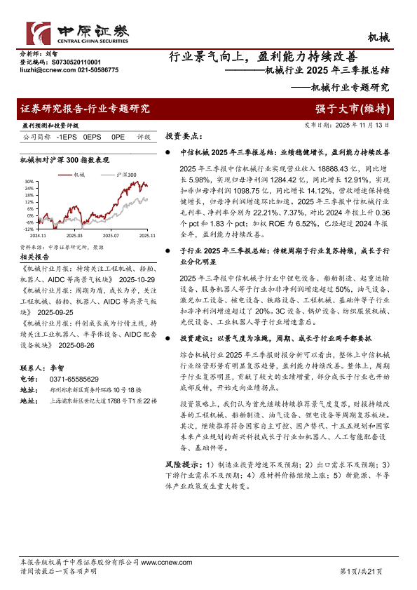 【中原证券】【202511】机械行业2025年三季报总结:行业景气向上,盈利能力持续改善-21页