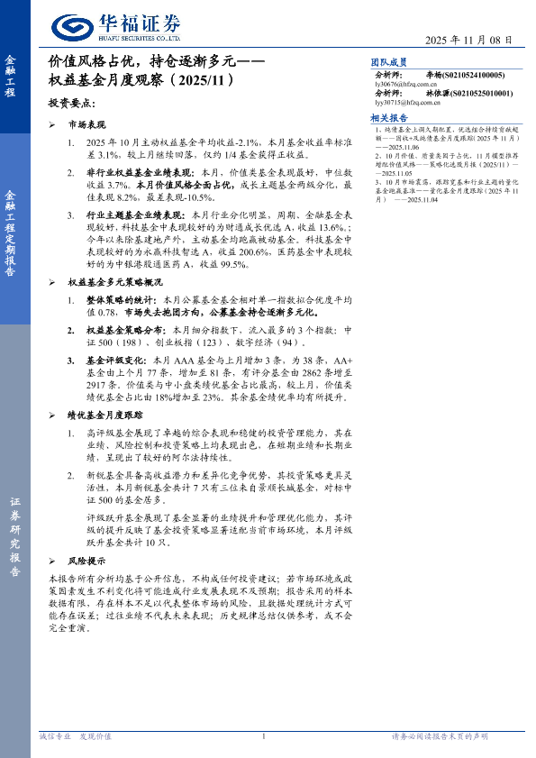 【华福证券】【202511】价值风格占优,持仓逐渐多元——权益基金月度观察(2025/11)-15页