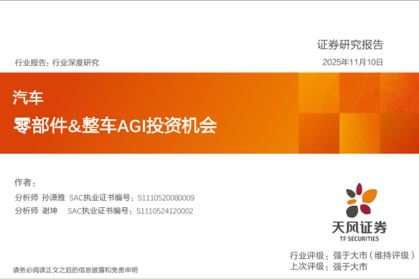 【天风证券】【202511】零部件&整车AGI投资机会-21页