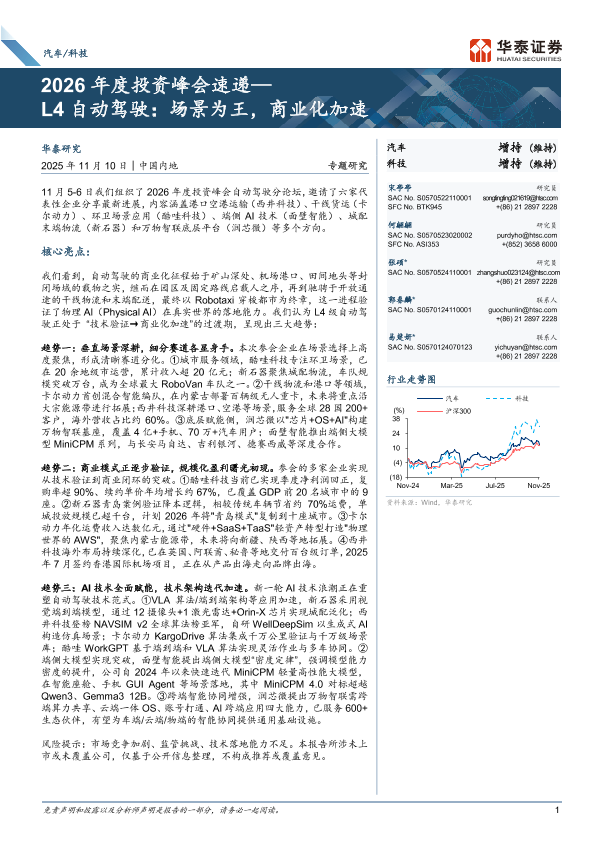 【华泰证券】【202511】2026年度投资峰会速递—L4自动驾驶:场景为王,商业化加速-22页