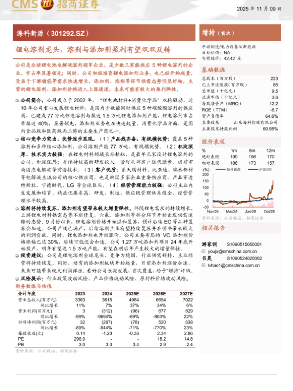 【海通证券】【202511】锂电溶剂龙头,溶剂与添加剂盈利有望双双反转-17页