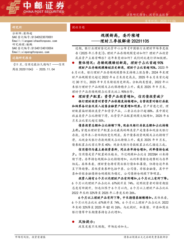 【中邮证券】【202511】规模新高,委外续增 ——理财三季报解读-14页
