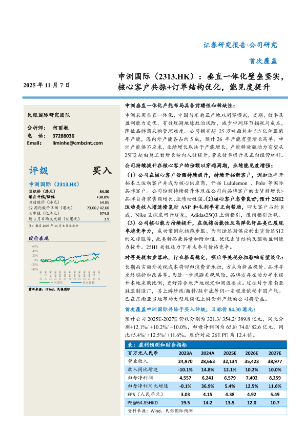 【民银国际】【202511】申洲国际(2313.HK)垂直一体化壁垒坚实,核心客户共振+订单结构优化,能见度提升-36页
