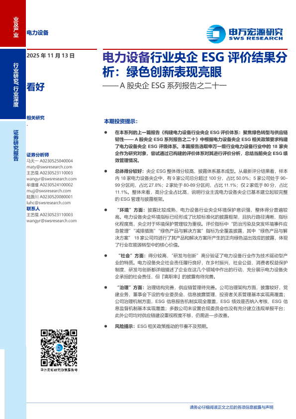 【申万宏源】【202511】电力设备行业央企ESG评价结果分析:绿色创新表现亮眼-22页