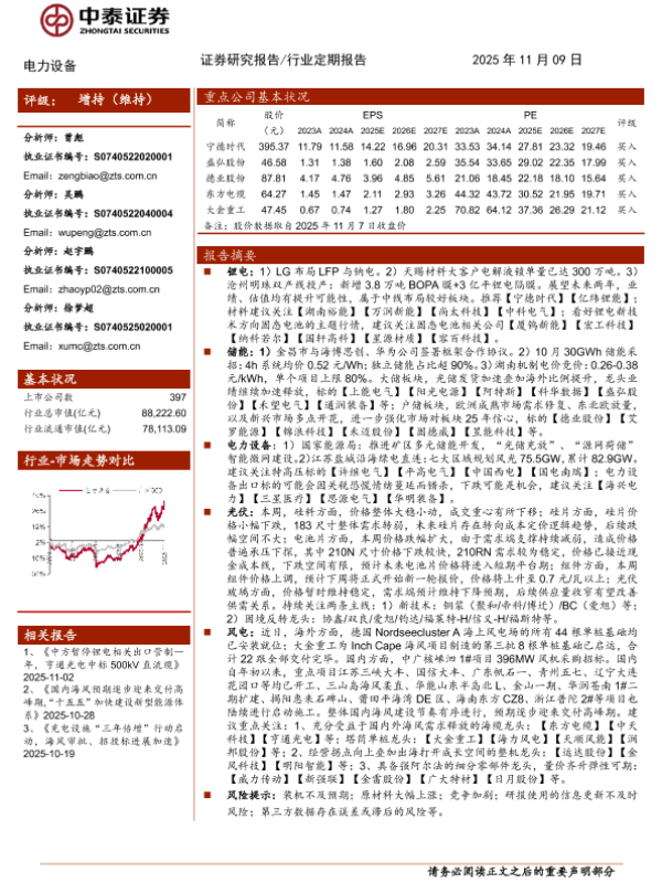 电力设备 风电 特高压 光伏 储能
