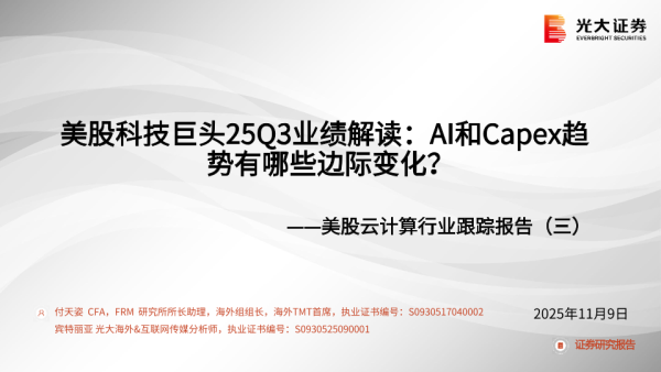 【光大证券】【202511】美股云计算行业跟踪报告(三):美股科技巨头25Q3业绩解读,AI和capex叙事有哪些边际变化?-21页