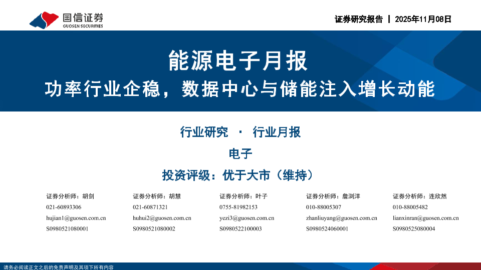 【国信证券】【202511】功率行业企稳,数据中心与储能注入增长动能-25页