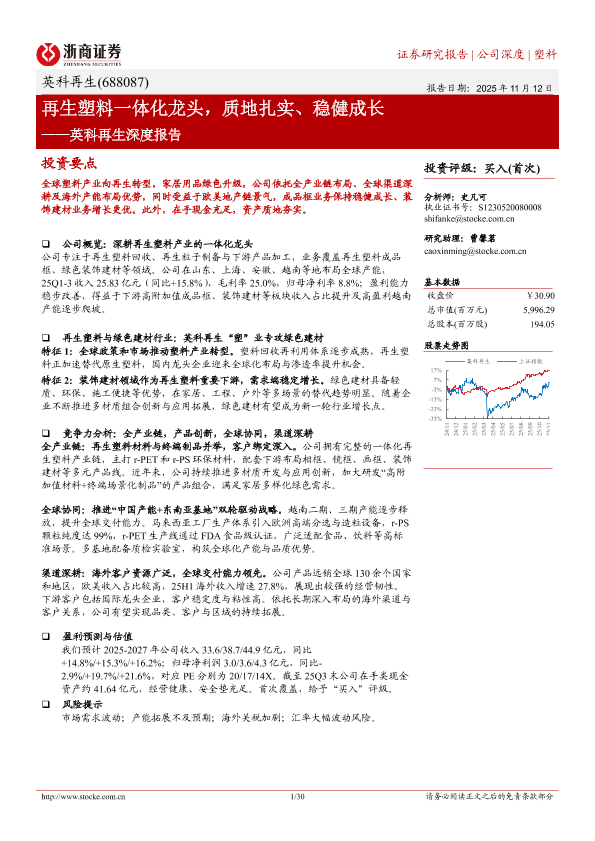 【浙商证券】【202511】再生塑料一体化龙头,质地扎实、稳健成长——英科再生深度报告-30页