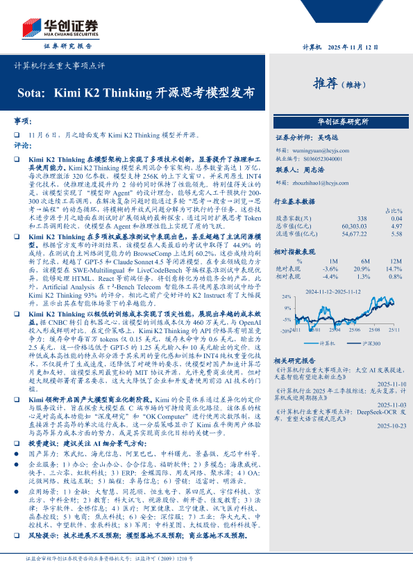 【华创证券】【202411】计算机行业重大事项点评:Sota,+Kimi+K2+Thinking开源思考模型发布-11页