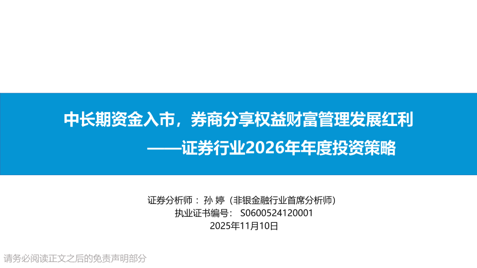 【东吴证券】【202511】中长期资金入市,券商分享权益财富管理发展红利——证券行业2026年年度投资策略-42页
