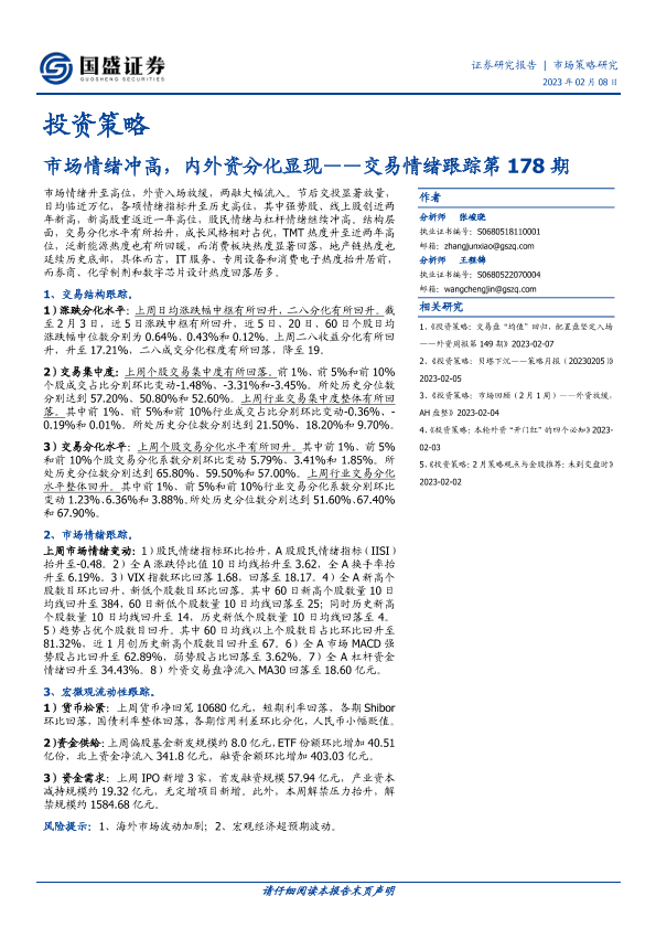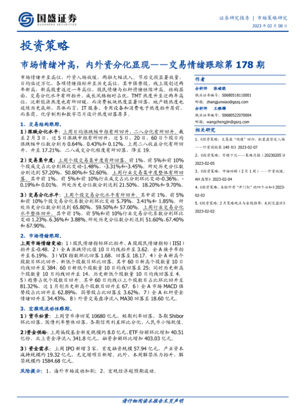 【国盛证券】【20230208】交易情绪跟踪第178期:市场情绪冲高,内外资分化显现-16页