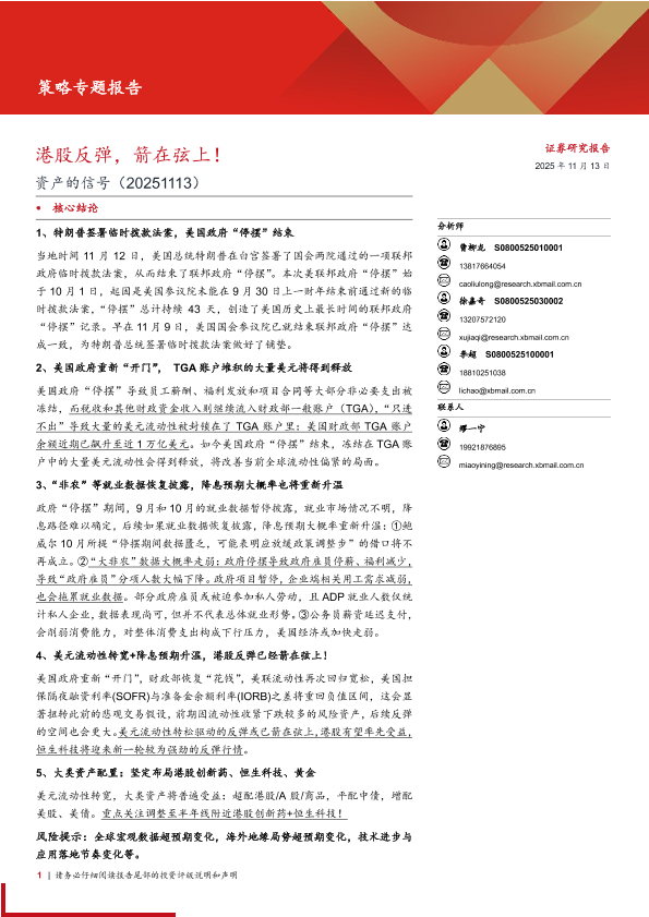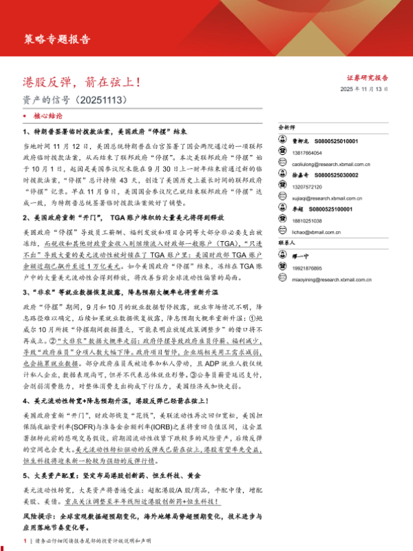 【西部证券】【202511】资产的信号:港股反弹,箭在弦上!-15页