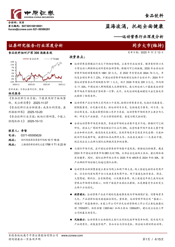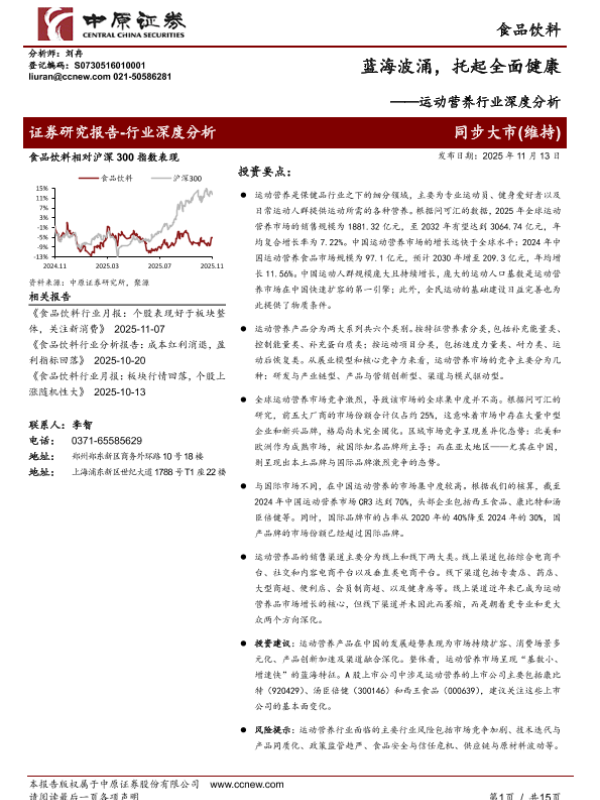 【中原证券】【202511】蓝海波涌,托起全面健康——运动营养行业深度分析-15页