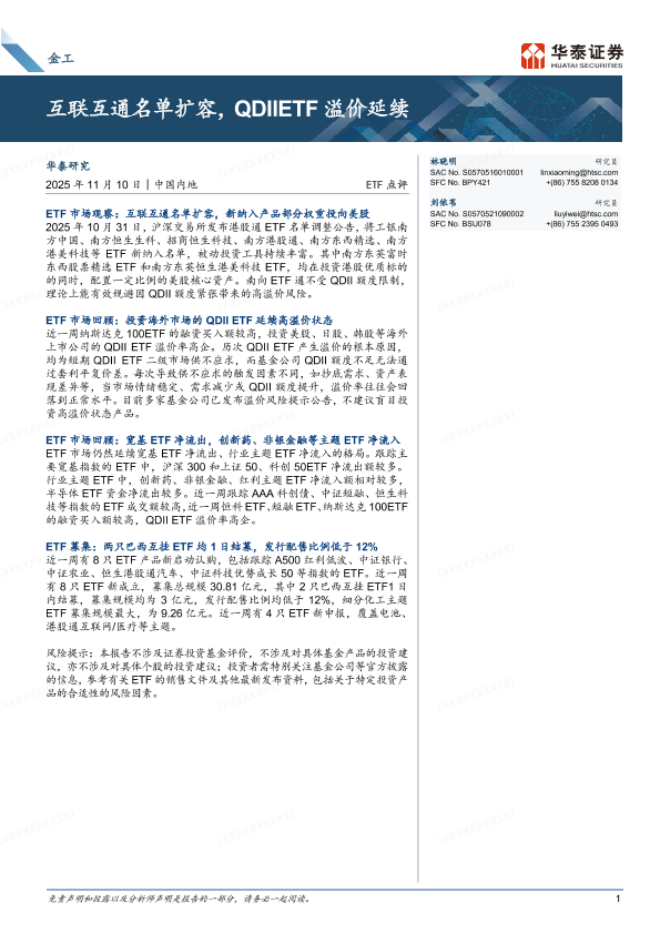 【华泰证券】【202511】金工ETF点评:互联互通名单扩容,QDIIETF溢价延续-10页