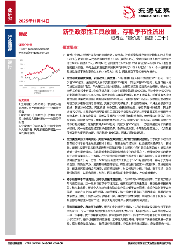 【东海证券】【202511】新型政策性工具放量,存款季节性流出——银行业“量价质”跟踪(二十)-10页