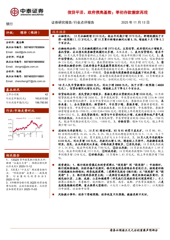 【中泰证券】【202511】银行业角度看10月社融:信贷平淡、政府债高基数;季初存款搬家再现-13页