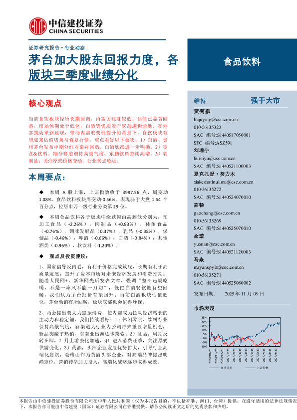 【中信建投证券】【202511】茅台加大股东回报力度,各版块三季度业绩分化-17页