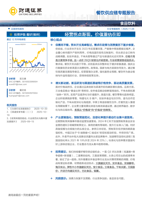 【财通证券】【202511】食品饮料行业餐饮供应链专题报告:经营拐点渐现,价值重估在即-22页