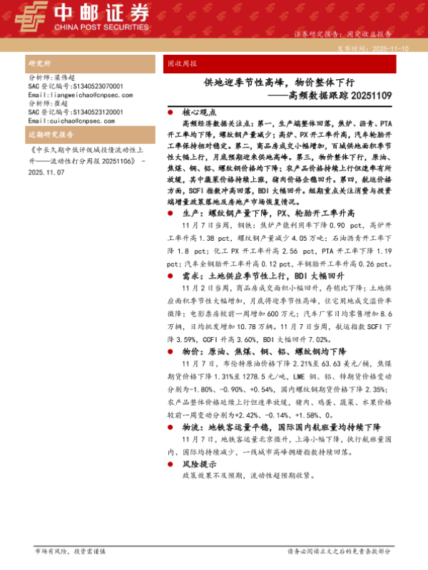 【中邮证券】【202511】供地迎季节性高峰,物价整体下行——高频数据跟踪 20251109-13页