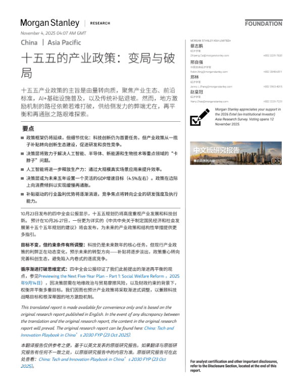 【Morgan Stanley】【2025】十五五的产业政策 变局与破局-18页