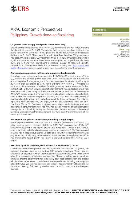 【UBS】【2025】Philippines Growth slows on fiscal drag-11页
