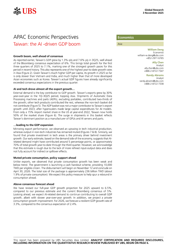 【UBS】【202511】Taiwan the AI -driven GDP boom-9页