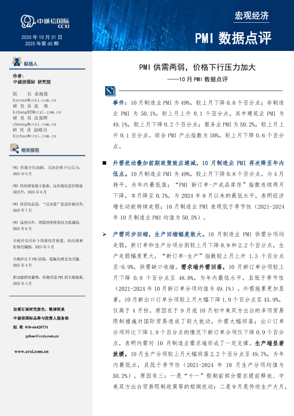 【中诚信国际】【202510】10月PMI点评-PMI供需两弱,价格下行压力加大-7页