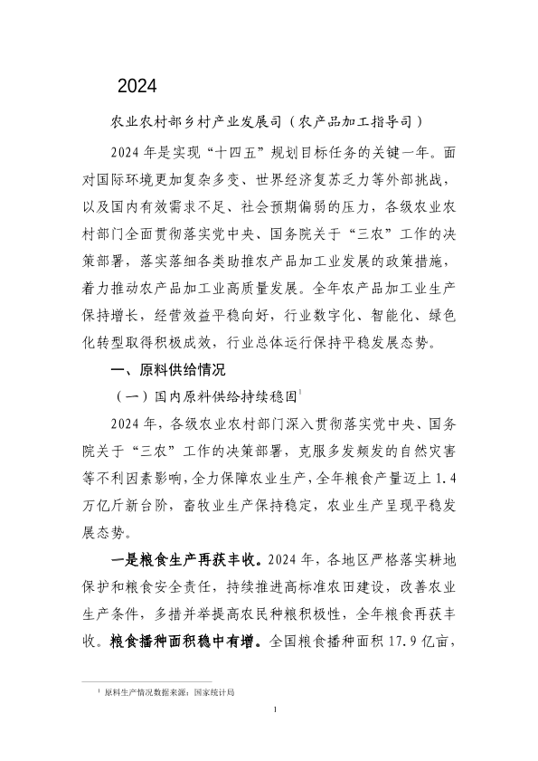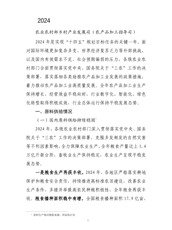 农业农村部乡村产业发展司(农产品加工指导司) 制造业 2024年 PDF 1.87 MB