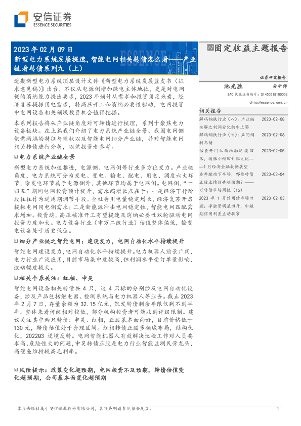 【安信证券】【20230209】产业链看转债系列九(上):新型电力系统发展提速,智能电网相关转债怎么看-15页