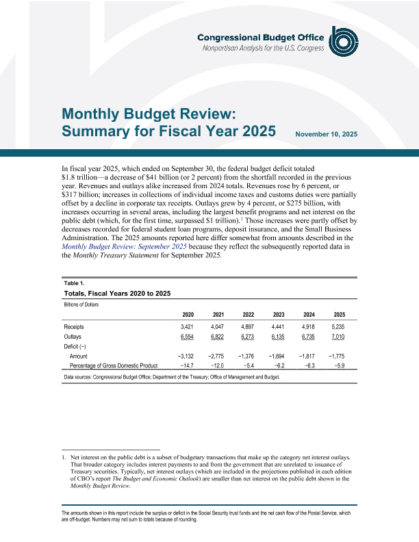 【Congressional Budget Office】【202511】MONTHLY BUDGET REVIEW SUMMARY FOR FISCAL YEAR 2025-7页