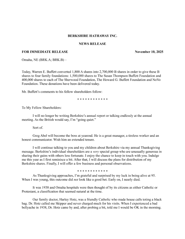 【BERKSHIRE HATHAWAY INC.】【202511】NEWS RELEASE-8页